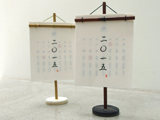 数年前に廃盤となった「サンバレーオニオンスキン紙」を使った、KAKURAの代表作とも言える竹綴じカレンダーは、2015年で16回目の製作。デッドストックしている紙も来年製作する2016年分で終了。製造の担い手である義母も竹を切ったり、磨いたり、紙を綴じたりする作業が厳しくなり、この2015年のカレンダーを最後に引退することになりました。製造はスタッフが引き継ぎ、進めていくものの、材料が手に入らなければ厳しい。。。もしかしたら2016年まで、になってしまうかも?の貴重な貴重な竹綴じカレンダー。日本の竹と透けるシャリ感のある紙、陶器のこの組み合わせ、ぜひお手元に。