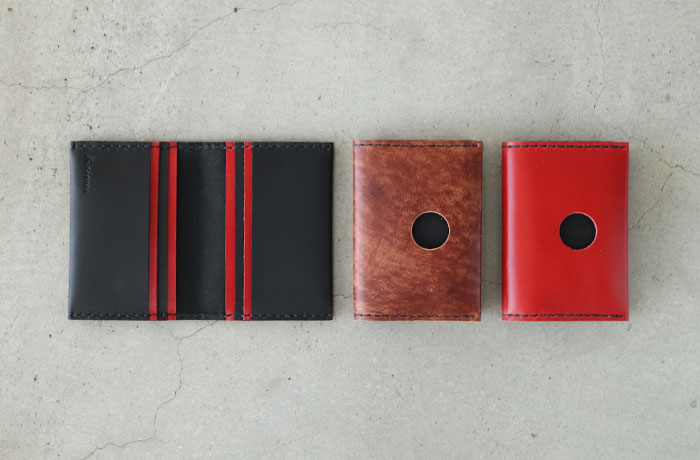 2色の革が層になったカードケース。