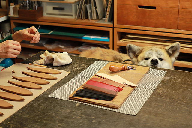 工房の空気は、一年で一番張り詰めているとき。 午前中の出荷作業が一段落すると、革、土、紙のいろんなパーツが 私の目線の高さであっちへこっちへ。 「師匠」と工房で呼ばれている私のお母さんは、日々ブックマークの柄付けに追われている。 かと思えば土を練り始め、葉っぱや竹の形のお香立てを作り始めた。 私も何かできないかなぁと、指をぎゅっと開いてみるチクなのでした。