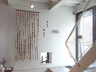 今日、新作の「革のれん」がまたひとつ工房内に増えた。工房兼ショップの入り口すぐの場所に展示中。1mmに薄くすいた革を、細い革紐で繋ぎ、“水”をイメージ。繊細な印象が涼しさに繋がるデザインを目指した。1本約50個のパーツで13列、約650パーツでできている。昨年から少しずつ作り続け、ようやく完成した1点。近日オンラインショップでもアップします。 工房内のあちこちに掛かった革のれん、ぜひ店にお越しの際にはじっくりご覧ください。