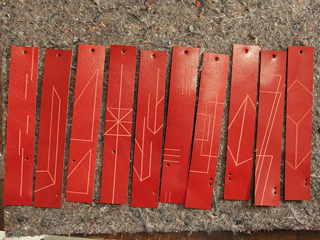 直前まで、工房内はフル回転で製造。革製品は手切り、手縫い仕上げなので、たっぷりと時間がかかります。ブックマークは革の表面を削り取る技法で、ひとつずつ柄付けします。今までで1,000通り以上の柄を考えたでしょうか。自由な発想でデザインし、作ることが好きな石原自らが手掛けています。毎回新しい柄なので、ぜひお気に入りを見つけにきてください。